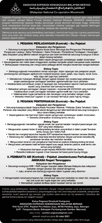 Iklan Jawatan Angkatan Koperasi Kebangsaan Malaysia Berhad (ANGKASA)