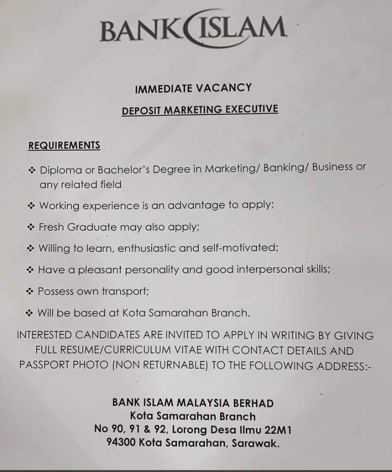 Iklan Jawatan Bank Islam Malaysia Berhad (BIMB)