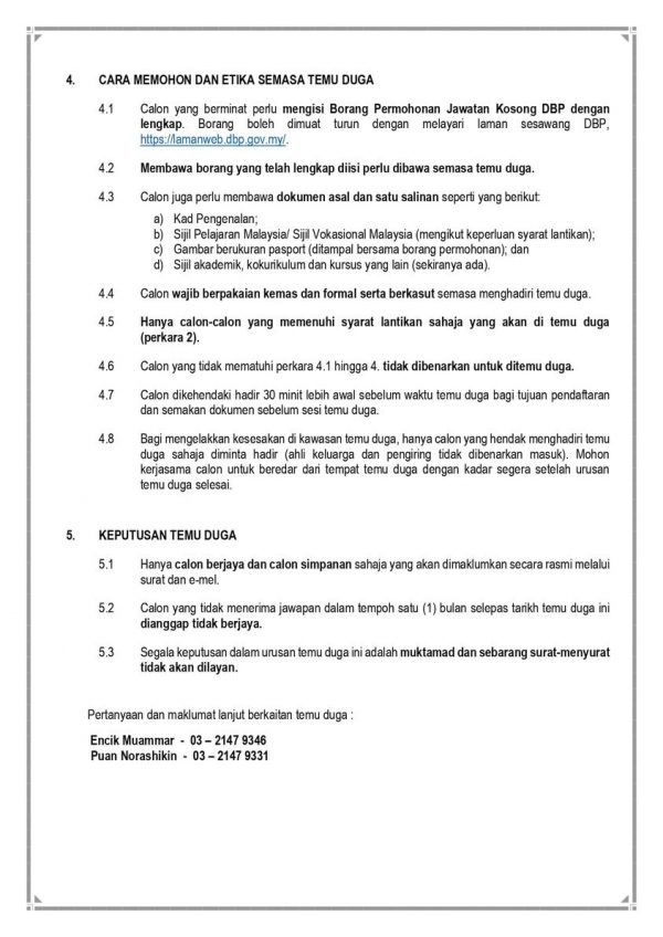 Iklan Jawatan Dewan Bahasa dan Pustaka