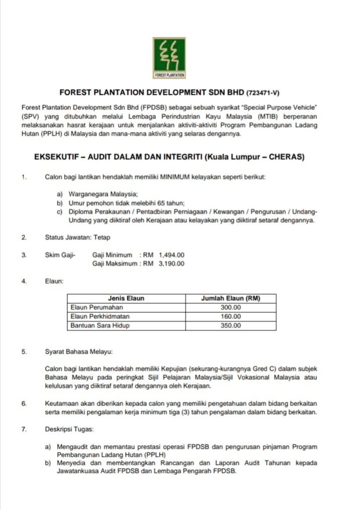 Iklan Jawatan Forest Plantation Development Sdn Bhd