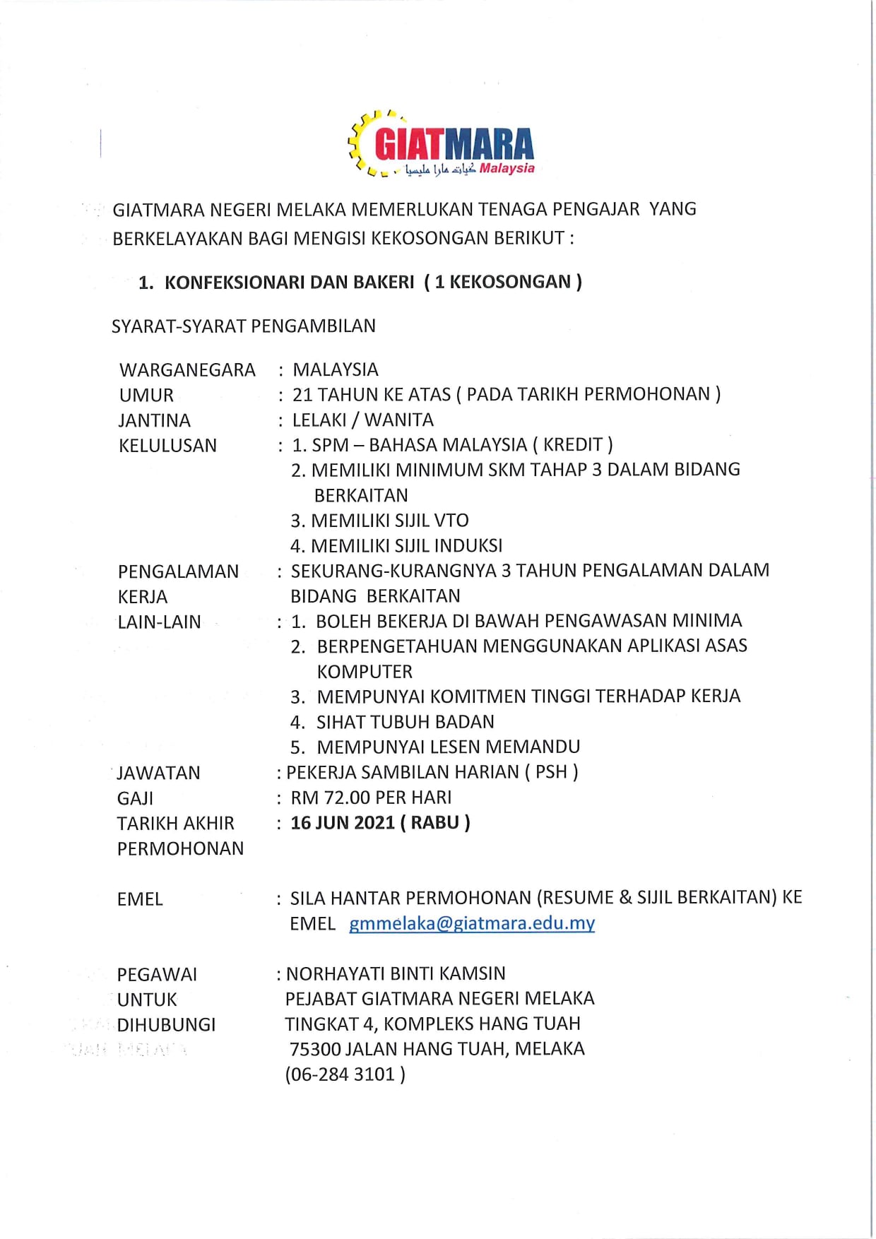 Iklan Jawatan GIATMARA