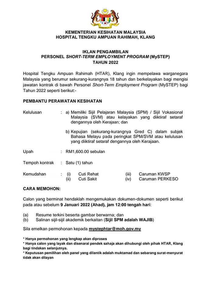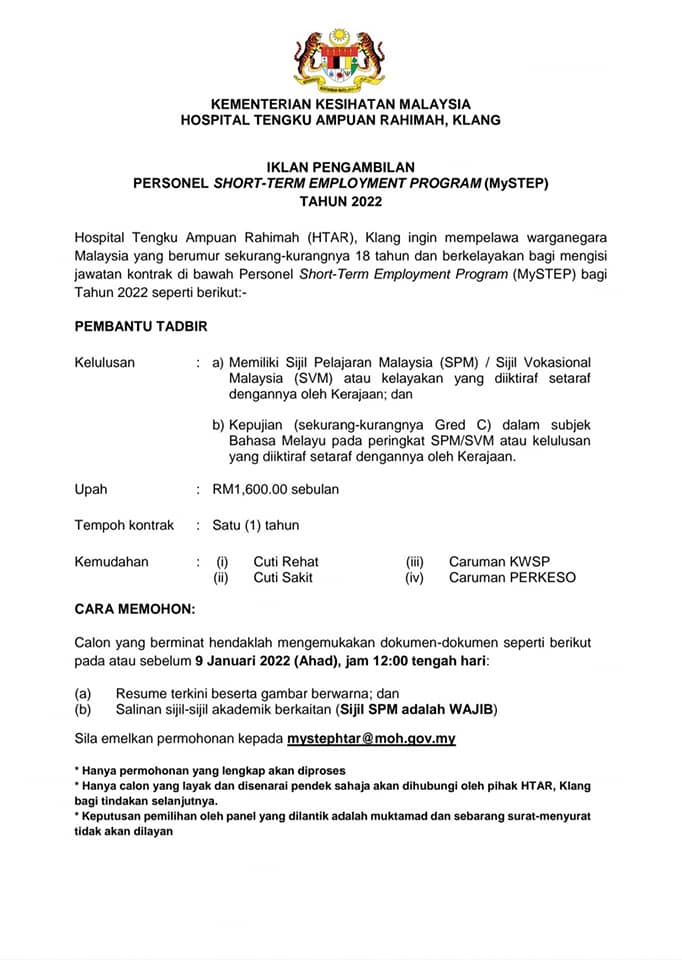 Iklan Jawatan Hospital Tengku Ampuan Rahimah