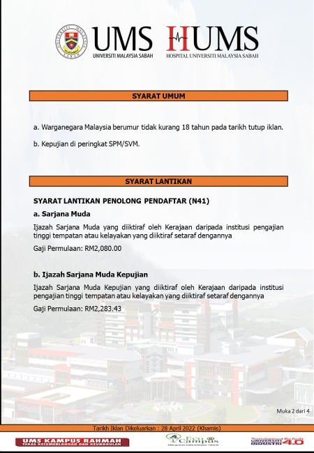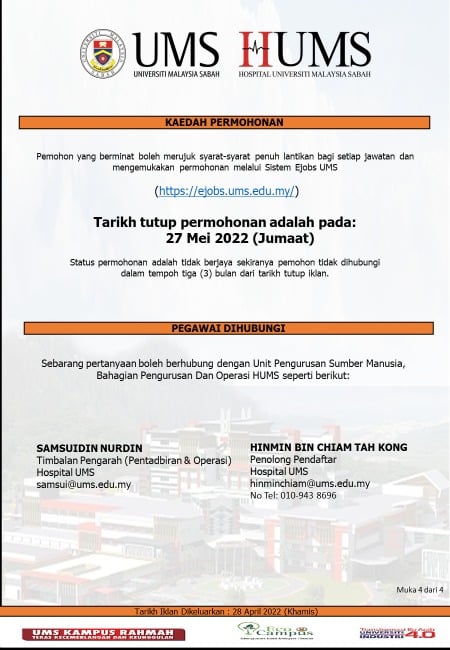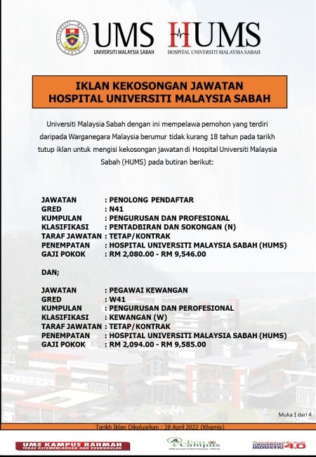 Iklan Jawatan Hospital Universiti Malaysia Sabah (HUMS)