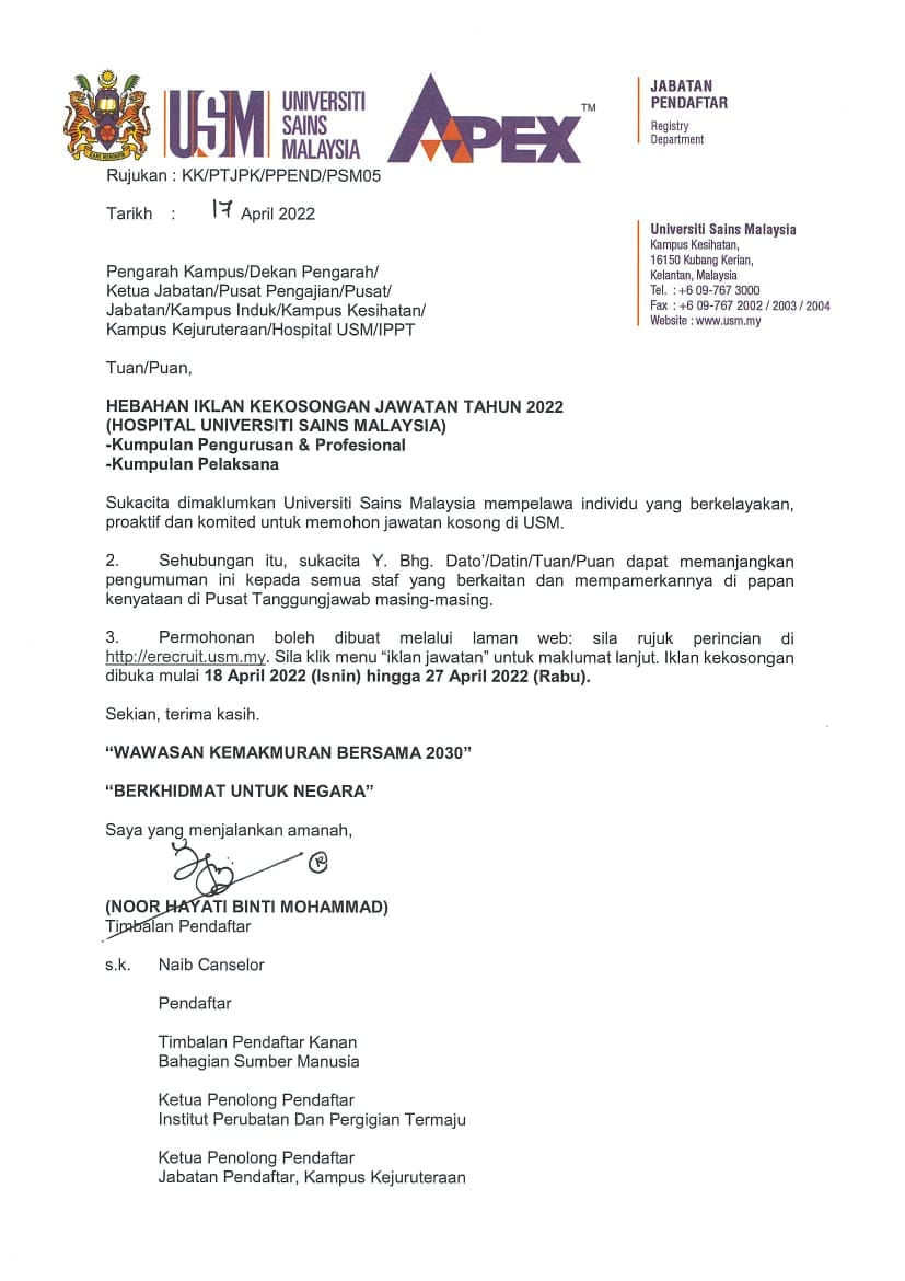 Iklan Jawatan Hospital Universiti Sains Malaysia (HUSM)