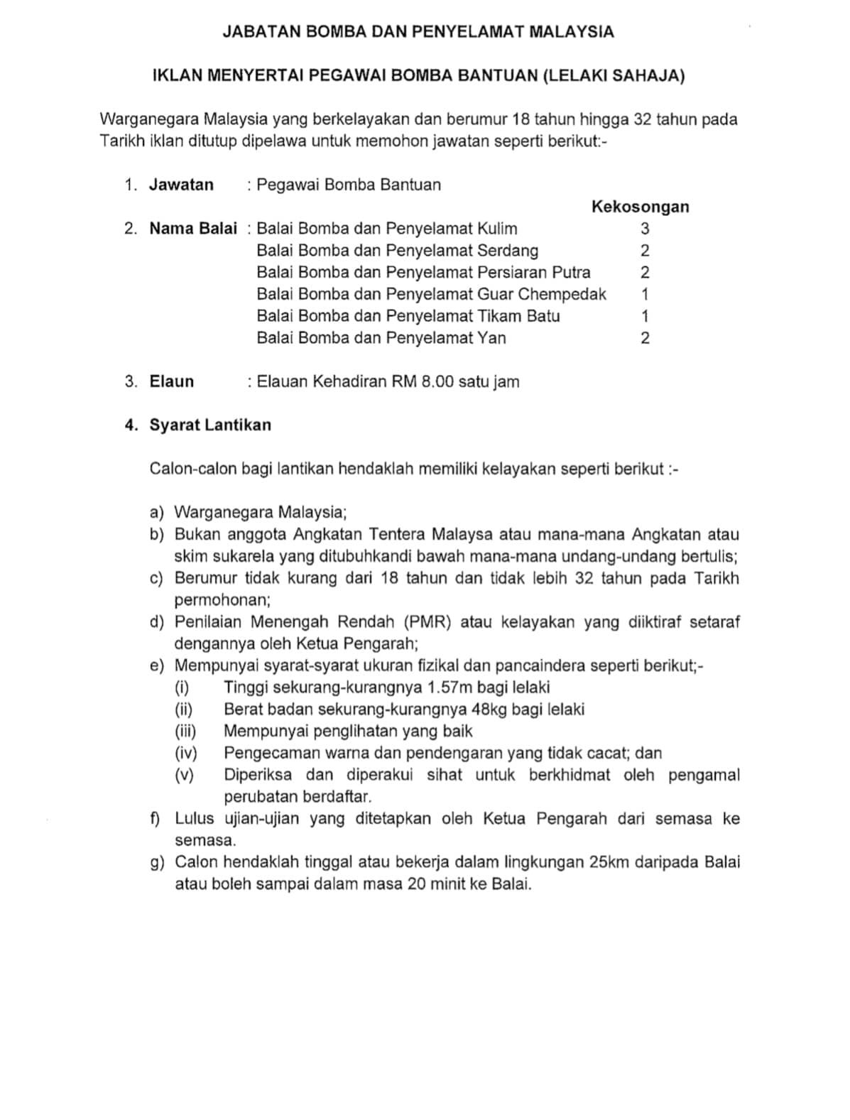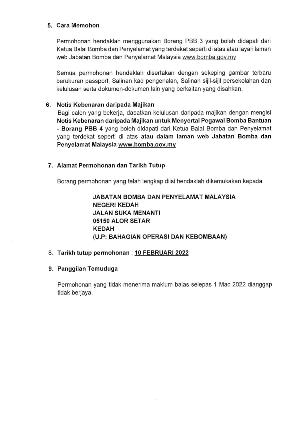 Iklan Jawatan Jabatan Bomba Dan Penyelamat Malaysia Negeri Kedah