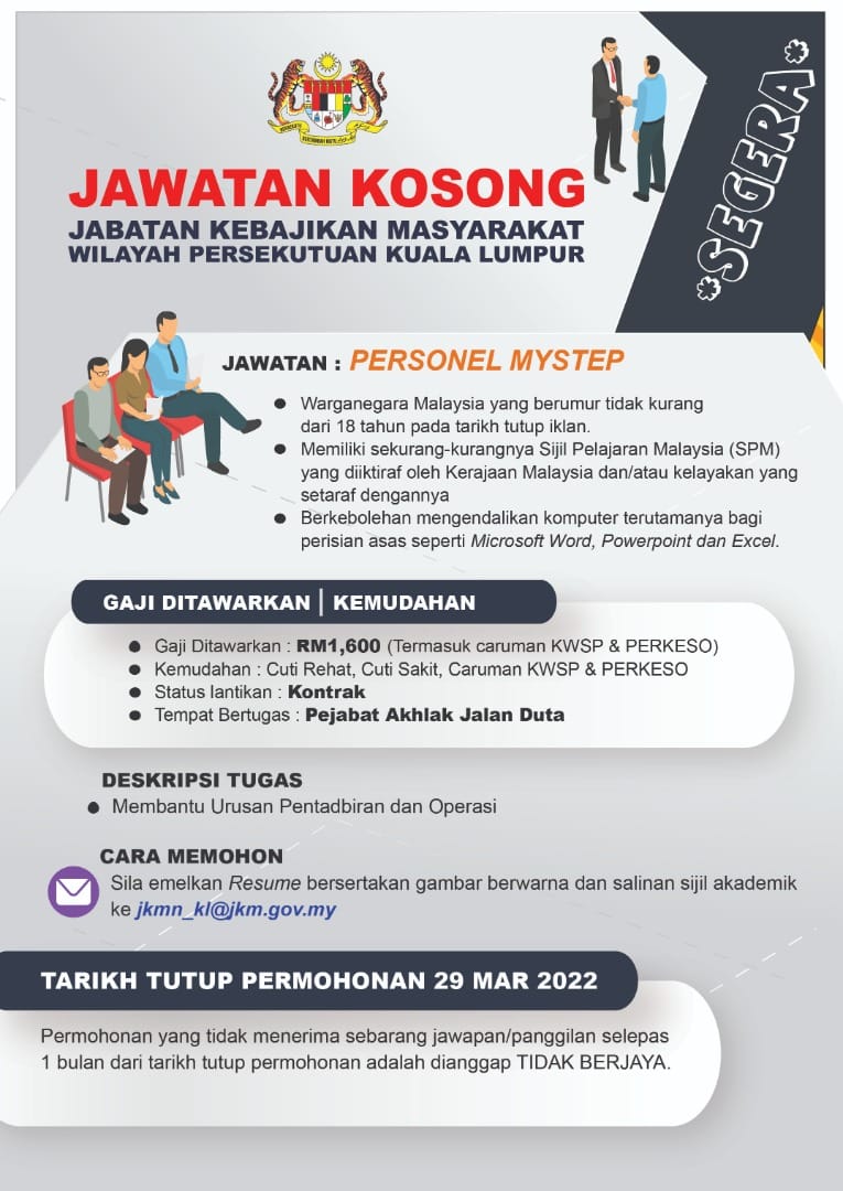 Iklan Jawatan Jabatan Kebajikan Masyarakat Wilayah Persekutuan Kuala Lumpur