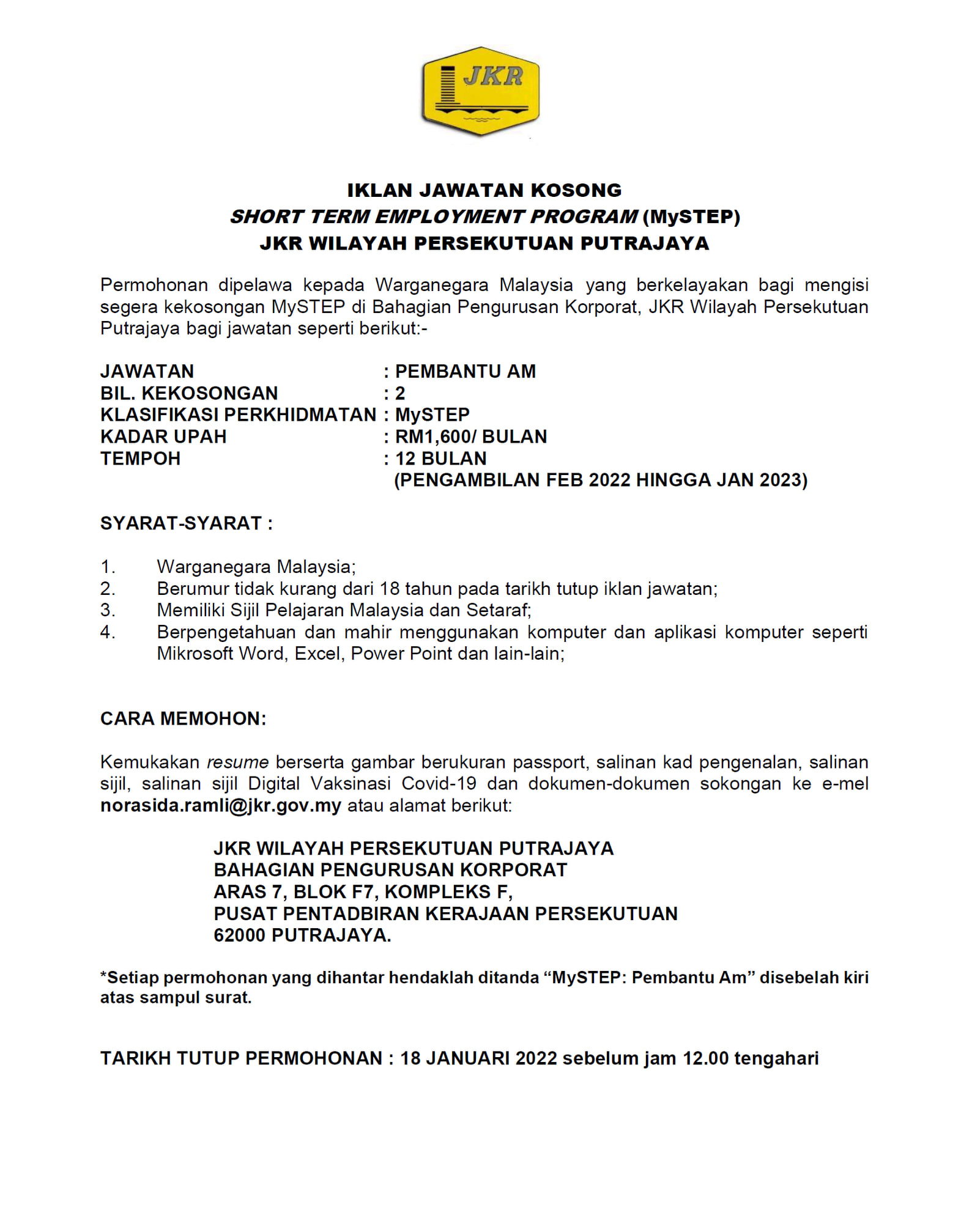 Iklan Jawatan Jabatan Kerja Raya (JKR)