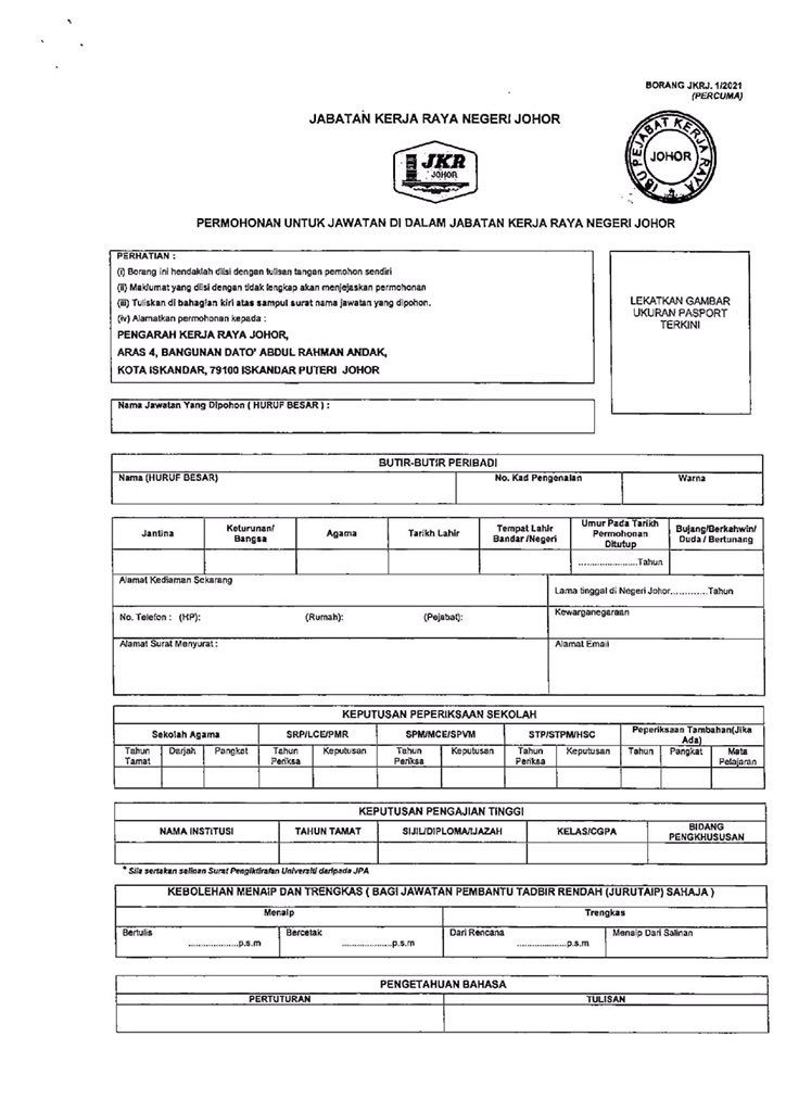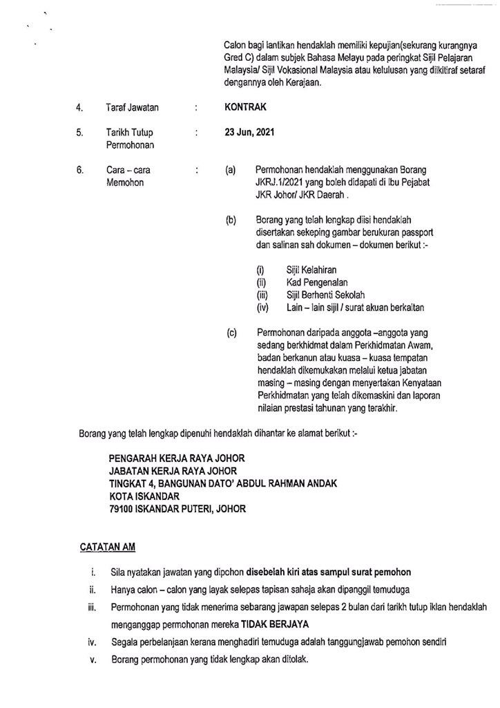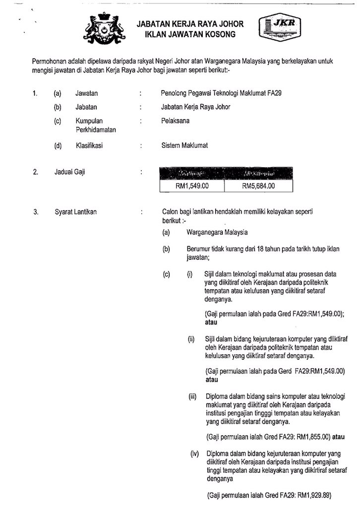 Iklan Jawatan Jabatan Kerja Raya Malaysia