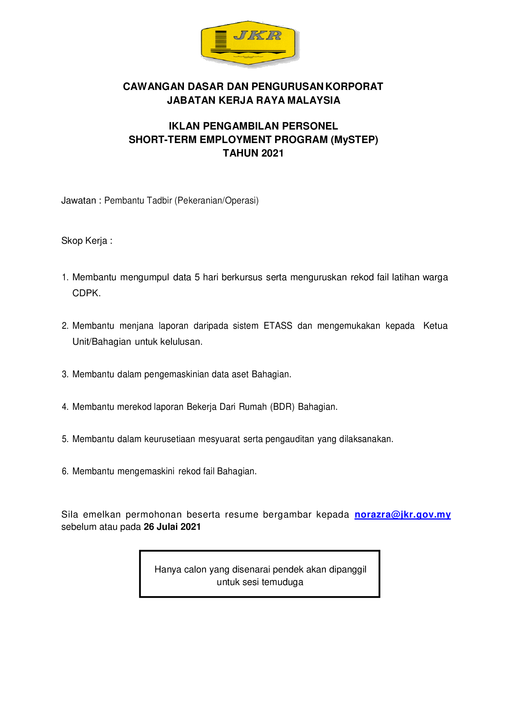 Iklan Jawatan Jabatan Kerja Raya Malaysia