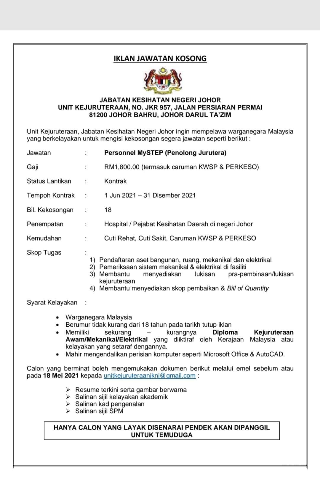 Iklan Jawatan Jabatan Kesihatan Negeri Johor