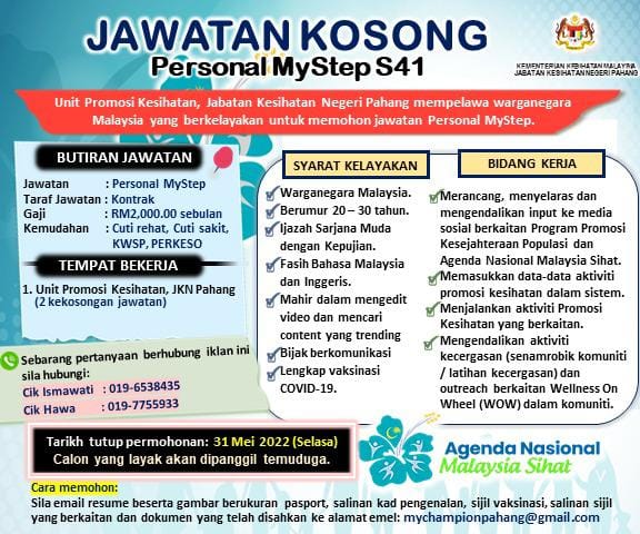 Iklan Jawatan Jabatan Kesihatan Negeri Pahang