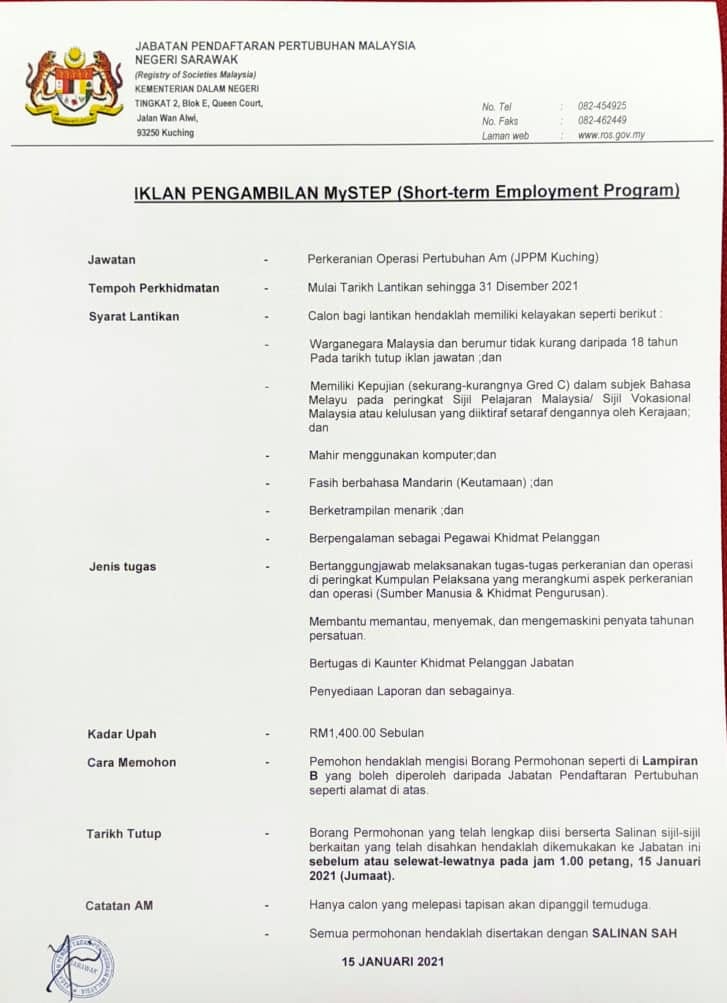Iklan Jawatan Jabatan Pendaftaran Pertubuhan Malaysia