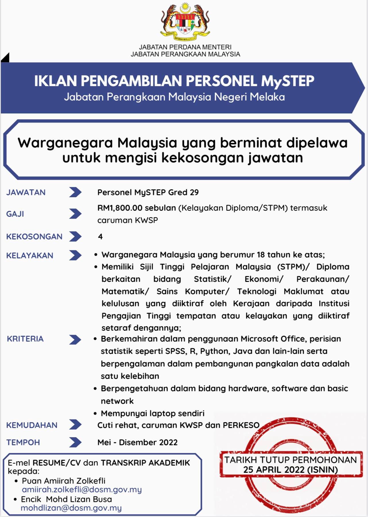 Iklan Jawatan Jabatan Perangkaan Malaysia