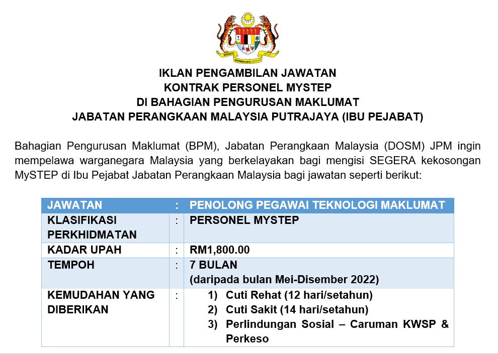 Iklan Jawatan Jabatan Perangkaan Malaysia