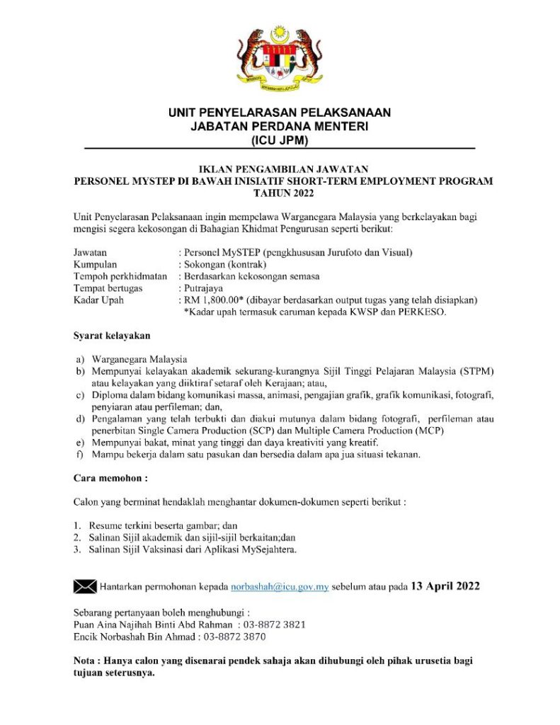 Iklan Jawatan Jabatan Perdana Menteri