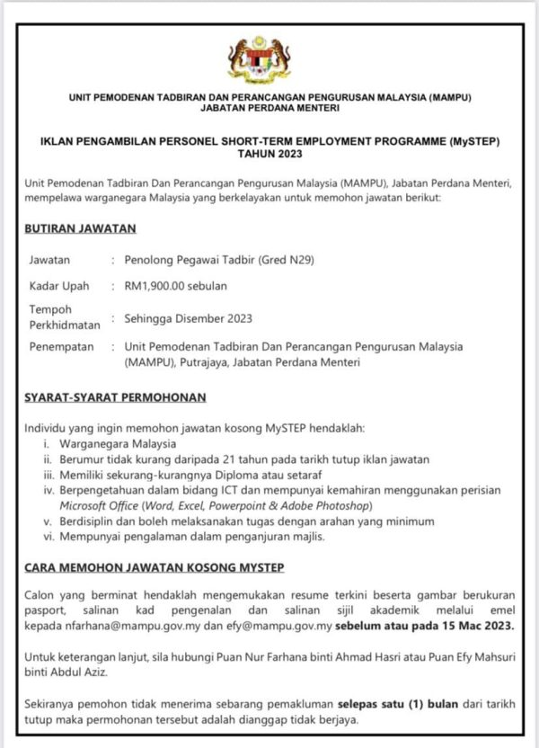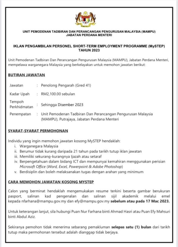 Iklan Jawatan Jabatan Perdana Menteri (JPM)