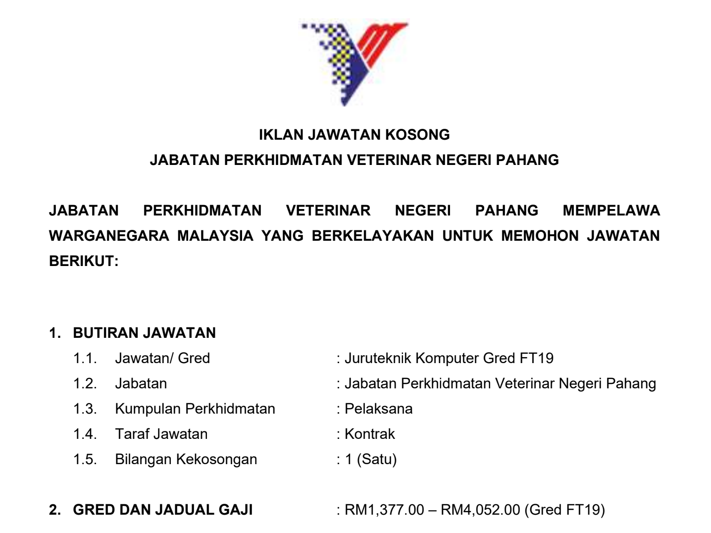 Iklan Jawatan Jabatan Perkhidmatan Veterinar