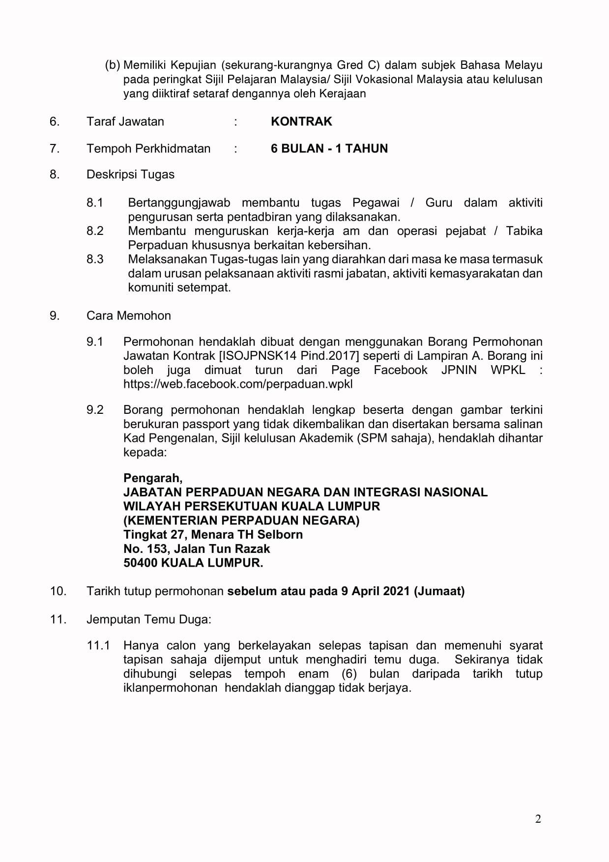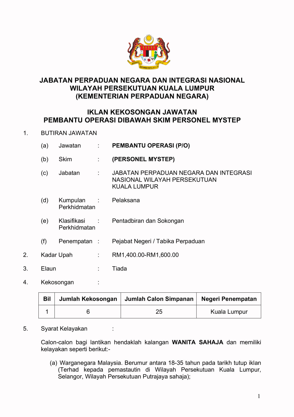 Iklan Jawatan Jabatan Perpaduan Negara Dan Integrasi Nasional