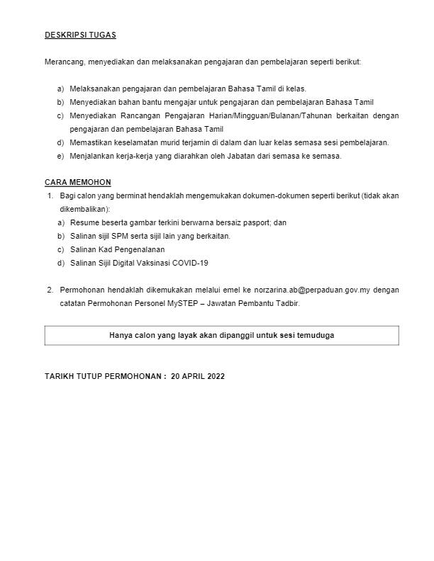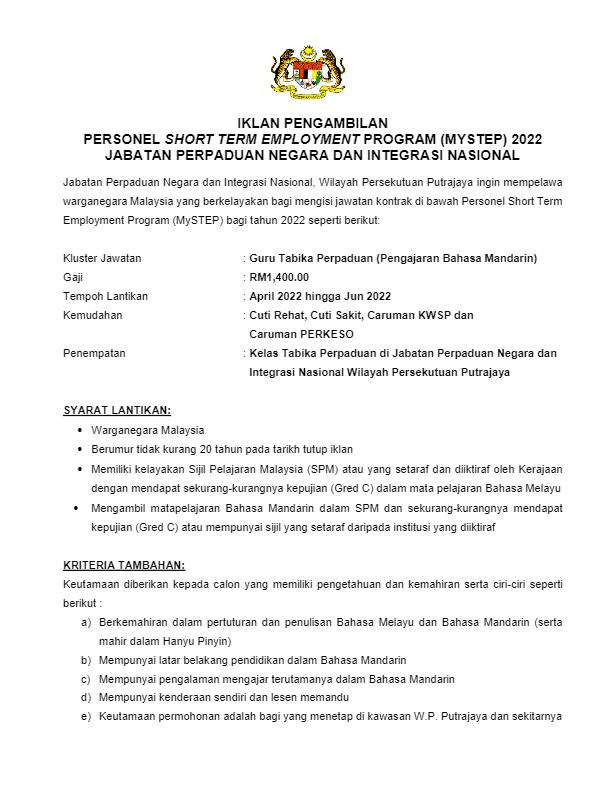Iklan Jawatan Jabatan Perpaduan Negara dan Integrasi Nasional (JPNIN)