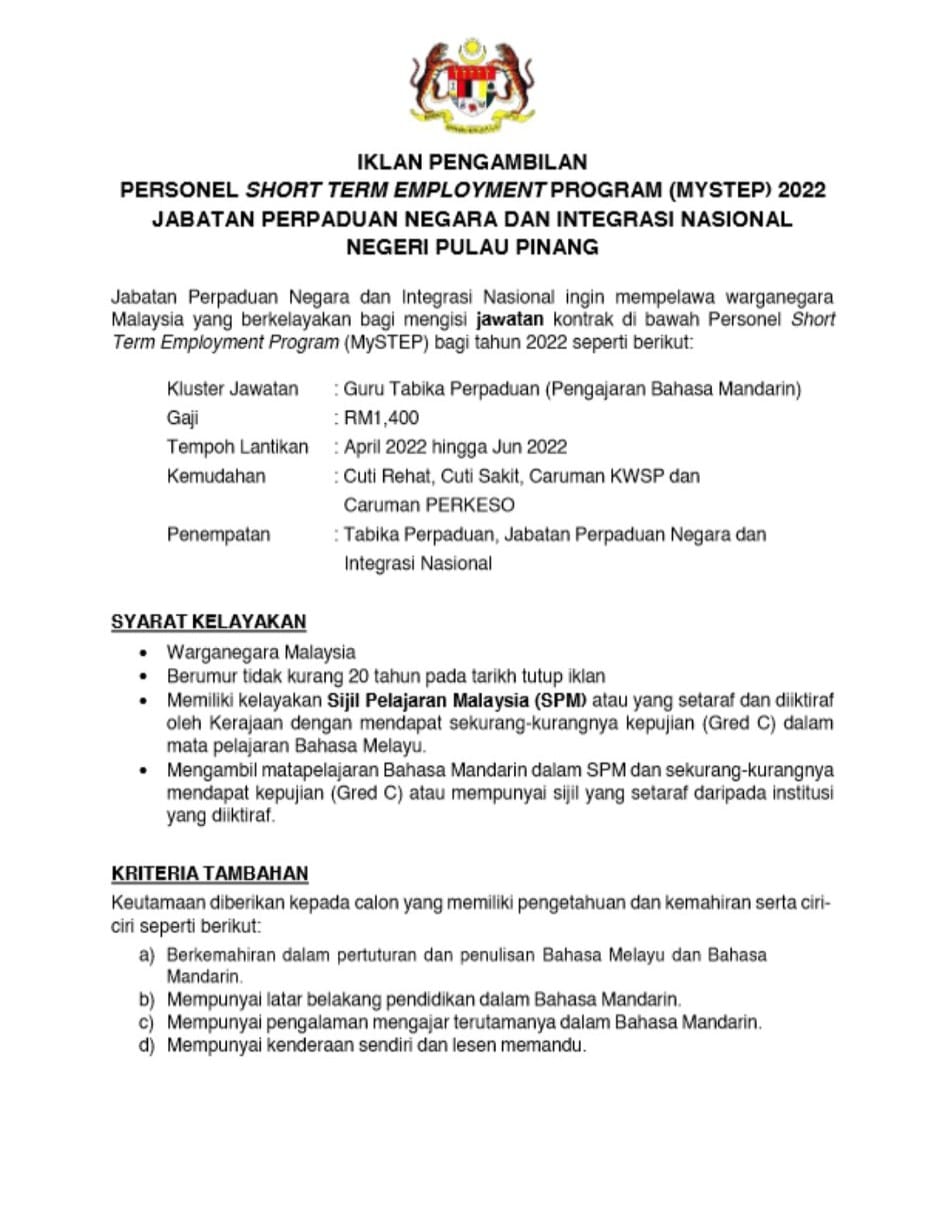 Iklan Jawatan Jabatan Perpaduan Negara dan Integrasi Nasional (JPNIN)