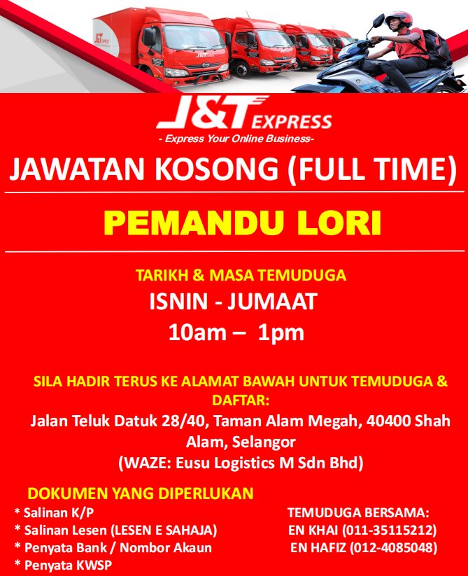 Iklan Jawatan J&T Express (Malaysia) Sdn Bhd