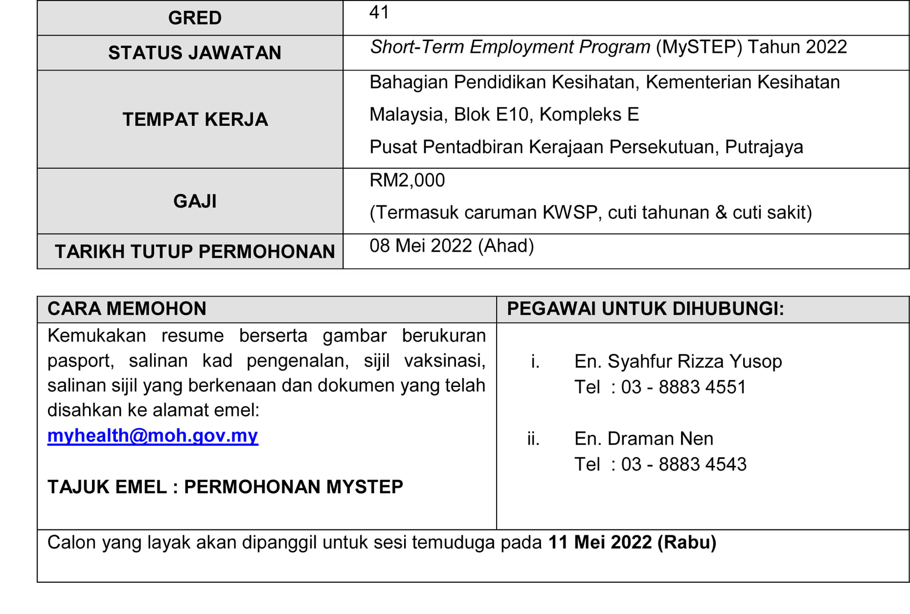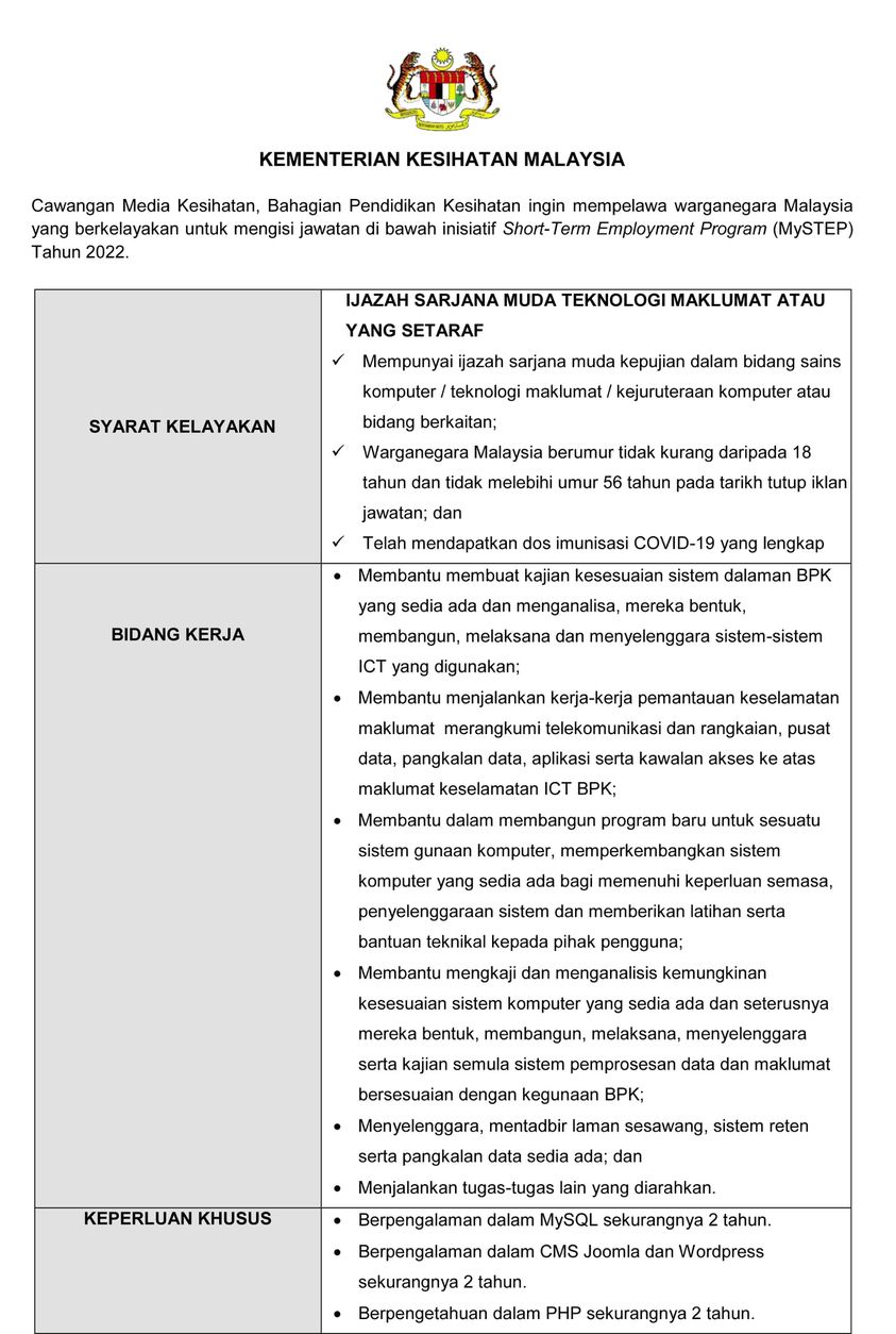 Iklan Jawatan Kementerian Kesihatan Malaysia