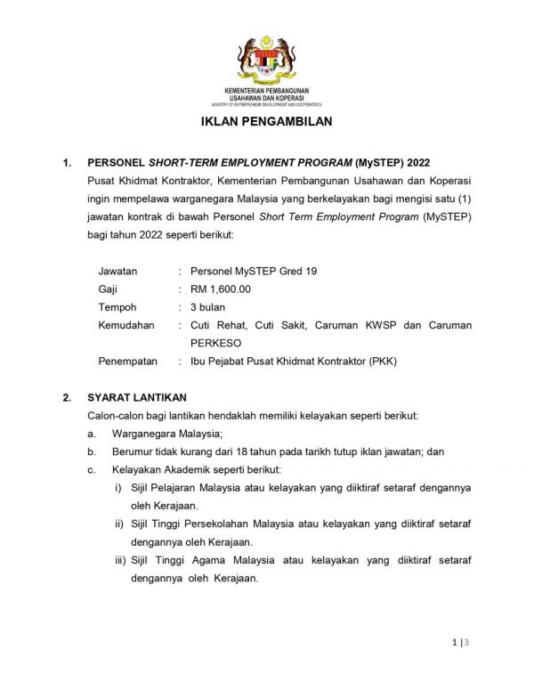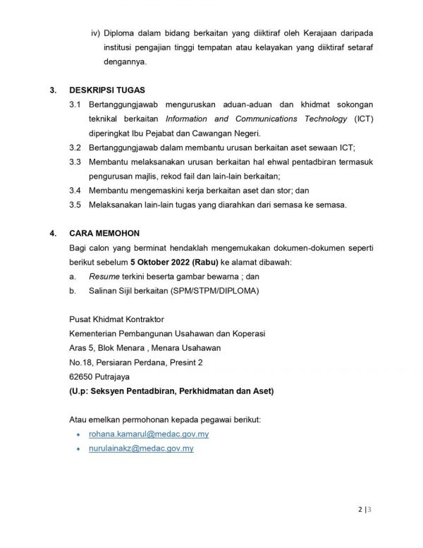 Iklan Jawatan Kementerian Pembanguan Usahawan Dan Koperasi