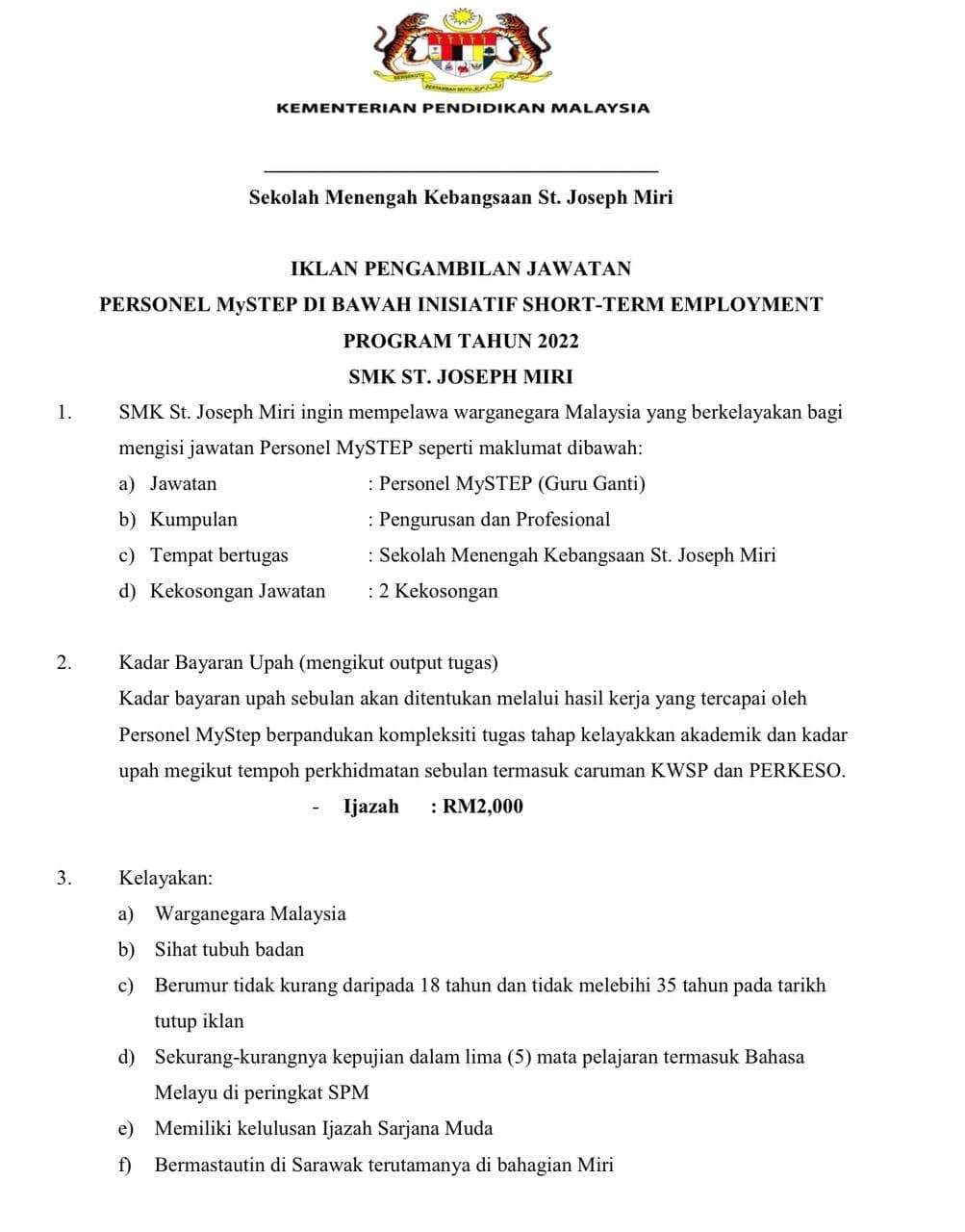 Iklan Jawatan Kementerian Pendidikan Malaysia