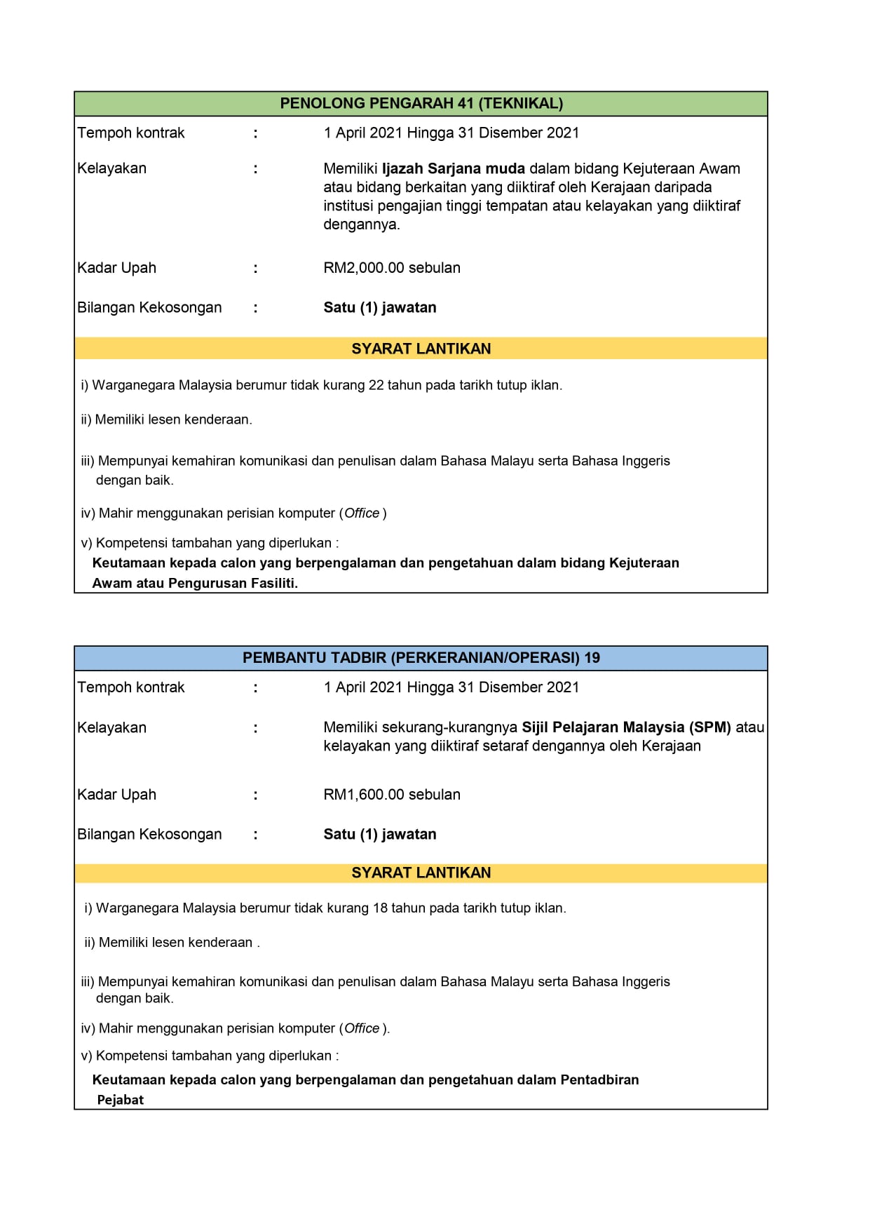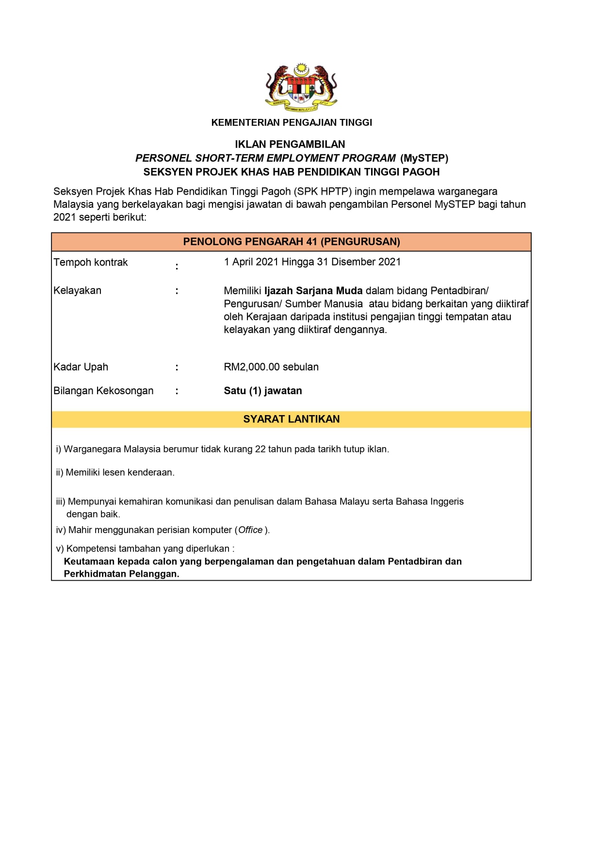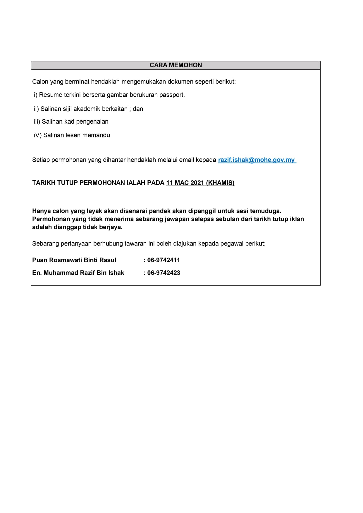Iklan Jawatan Kementerian Pengajian Tinggi