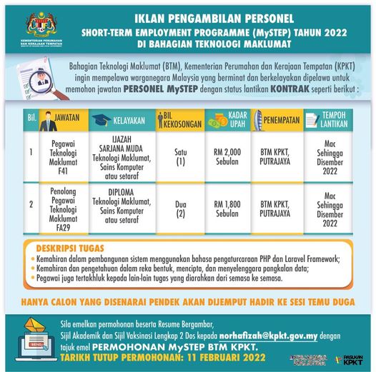 Iklan Jawatan Kementerian Perumahan & Kerajaan Tempatan (KPKT)
