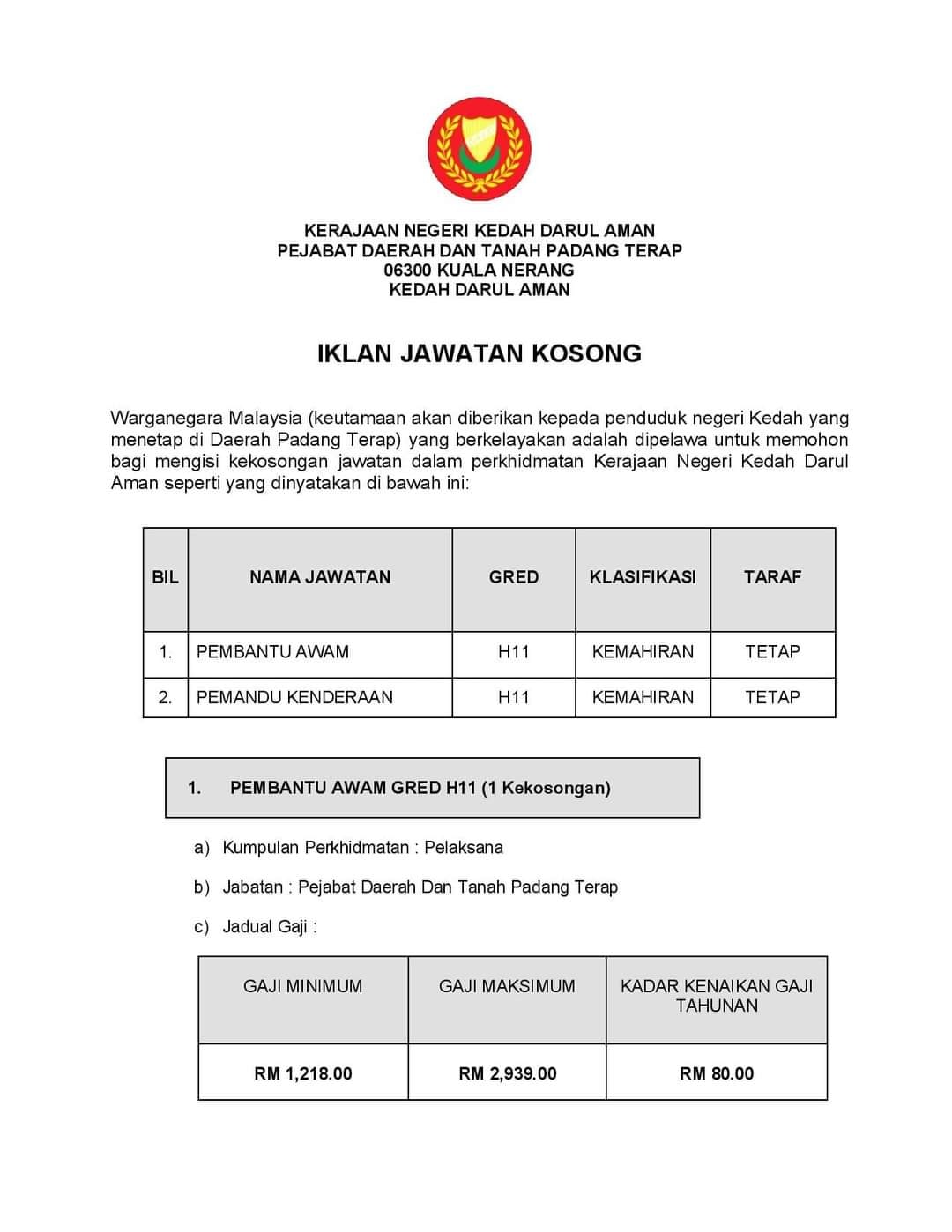Iklan Jawatan Kerajaan Negeri Kedah