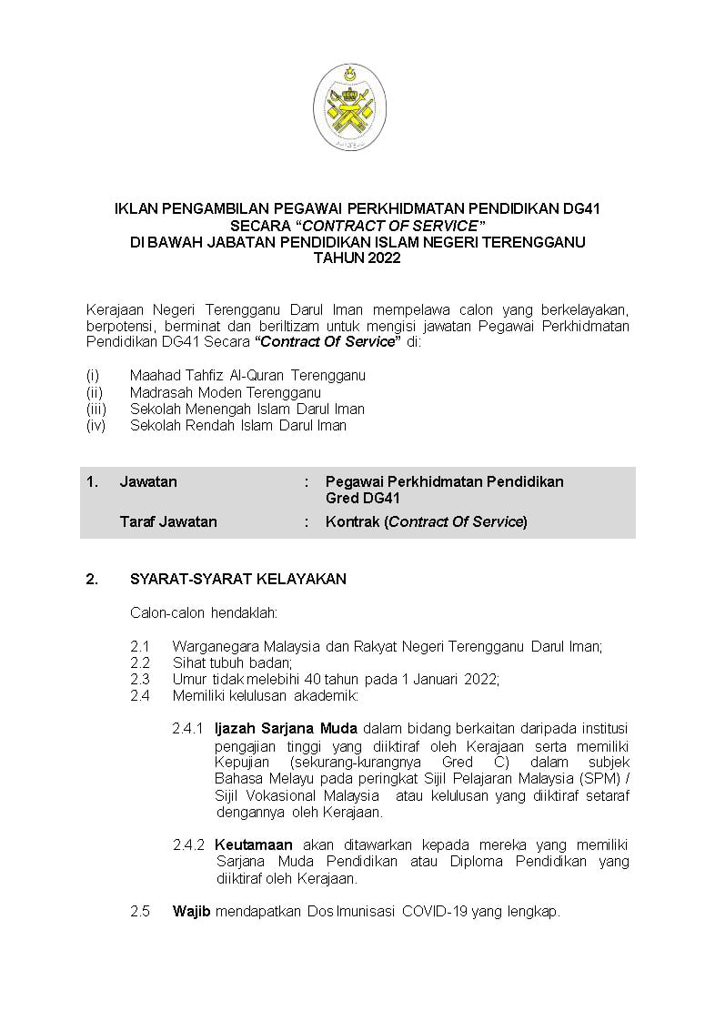 Iklan Jawatan Kerajaan Negeri Terengganu