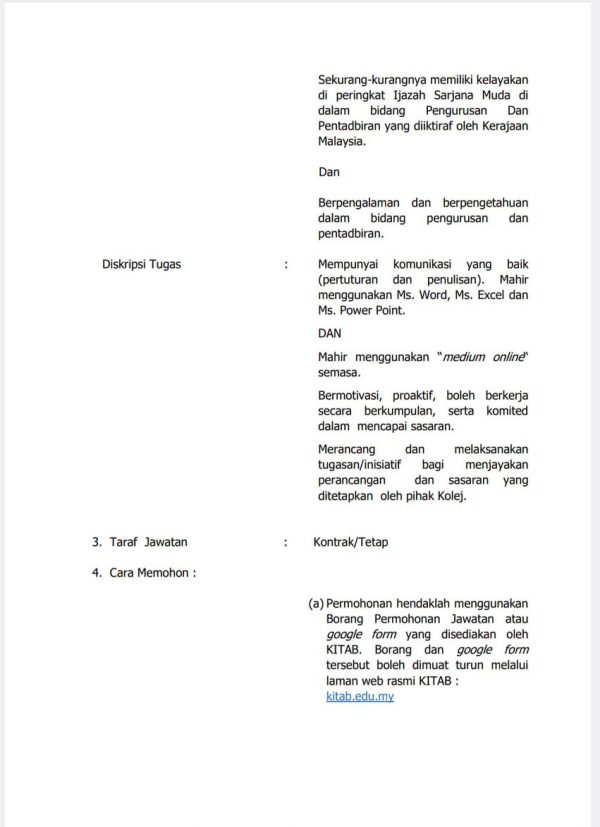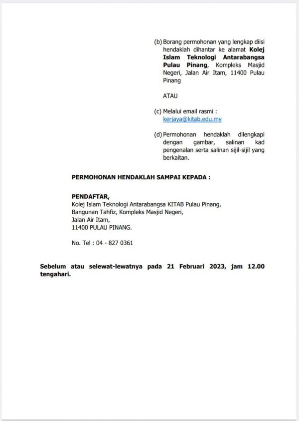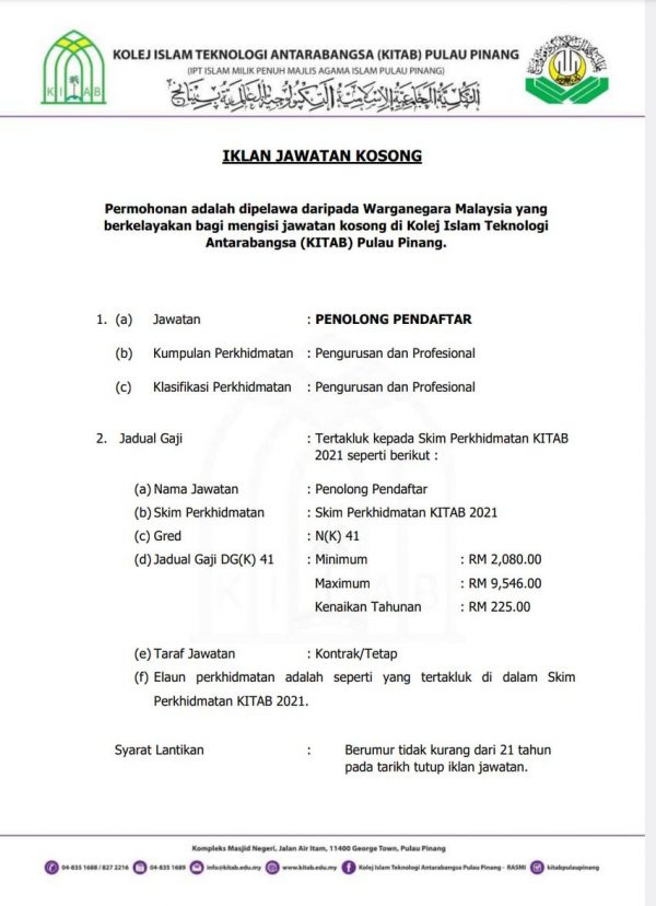 Iklan Jawatan Kolej Islam Teknologi Antarabangsa Pulau Pinang