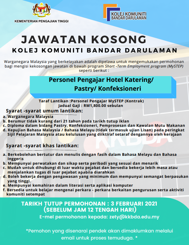 Iklan Jawatan Kolej Komuniti Bandar Darulaman (KKBDA)