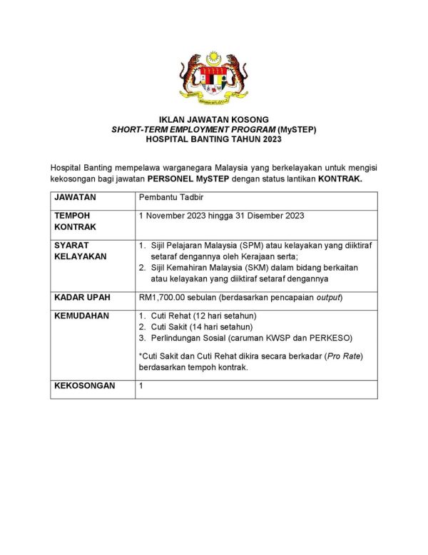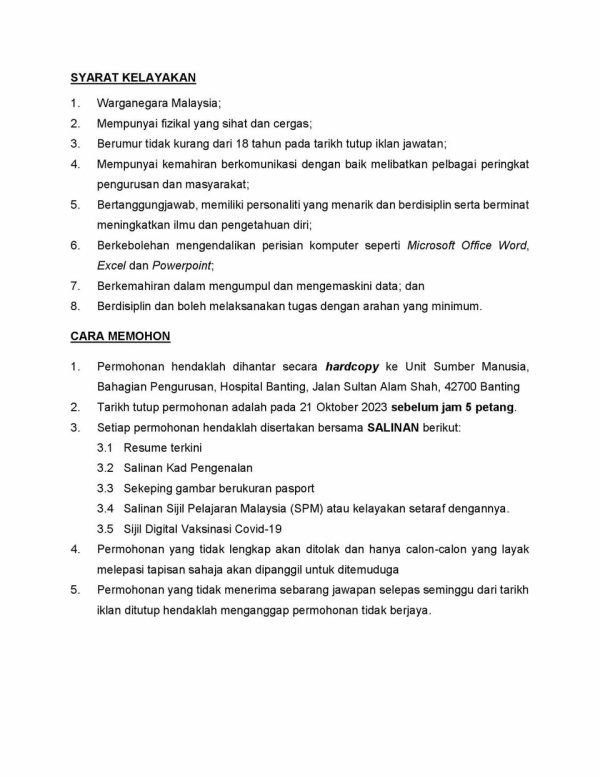 Iklan Jawatan Kosong Hospital Banting