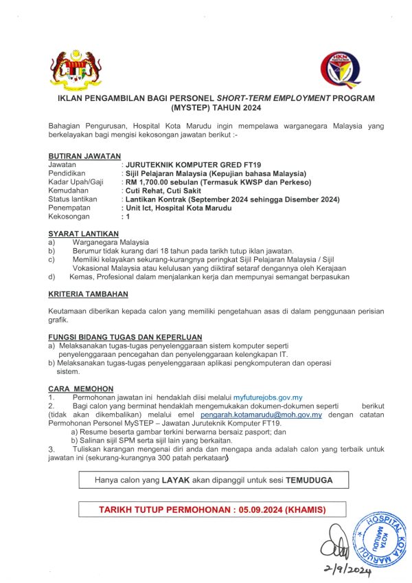 Iklan Jawatan Kosong Hospital Kota Marudu