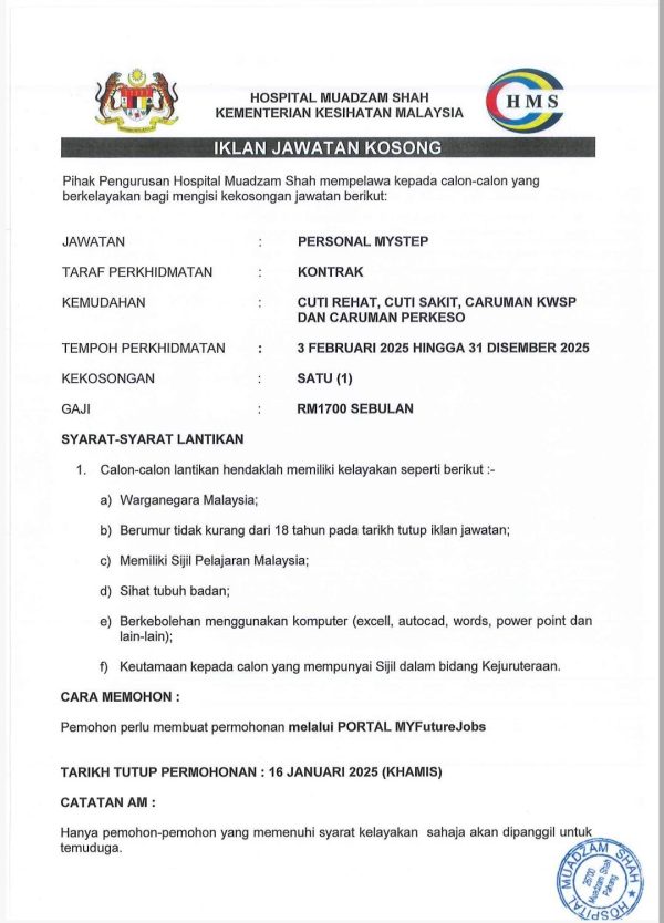 Iklan Jawatan Kosong Hospital Muadzam Shah