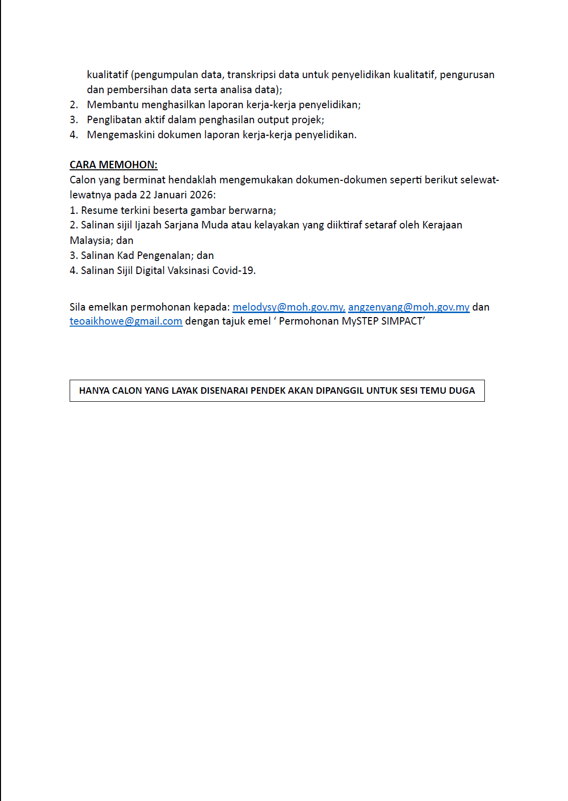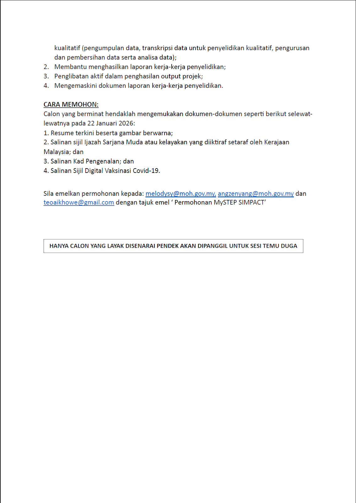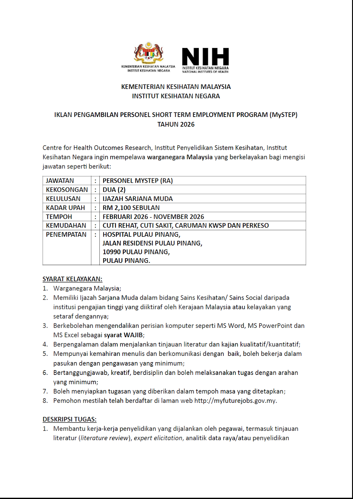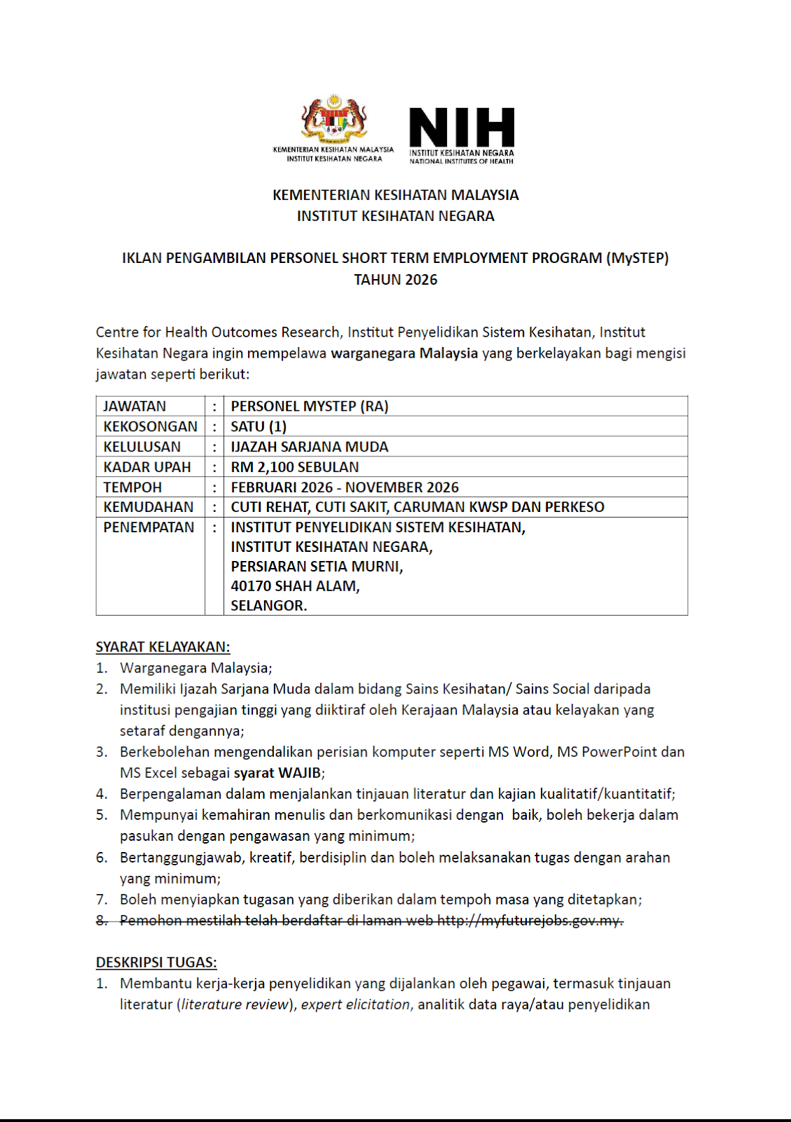 Iklan Jawatan Kosong Institut Kesihatan Negara