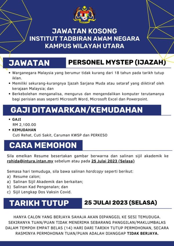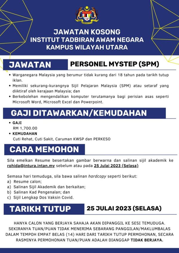 Iklan Jawatan Kosong Institut Tadbiran Awam Negara (INTAN)