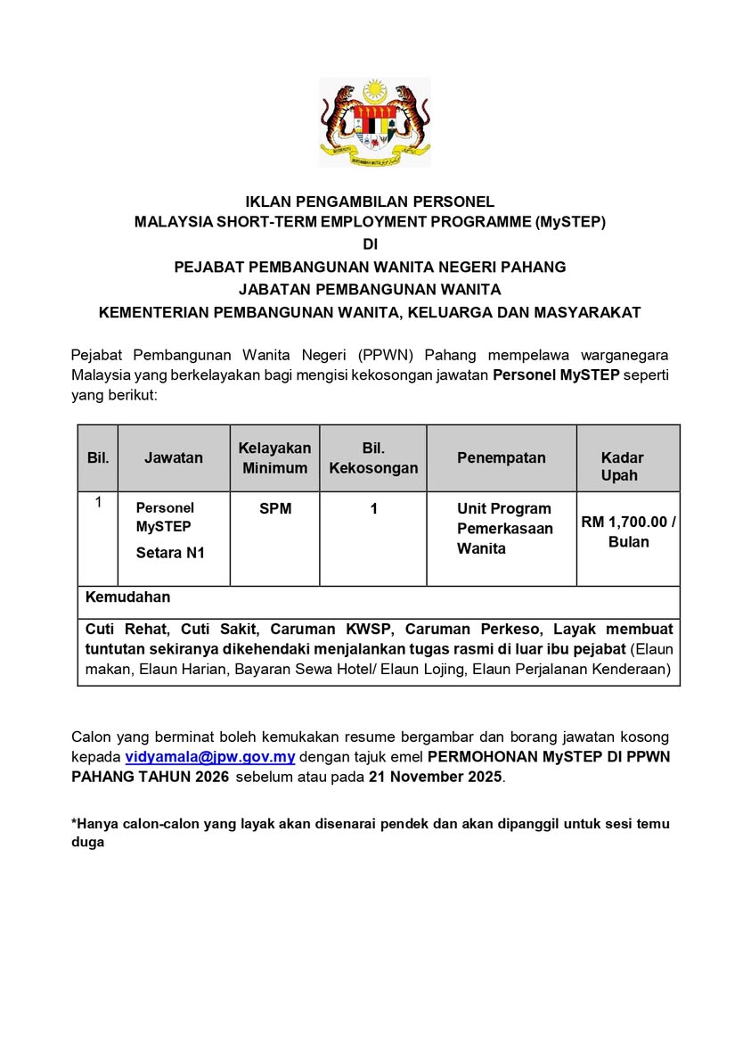 Iklan Jawatan Kosong Jabatan Pembangunan Wanita Keluarga & Masyarakat