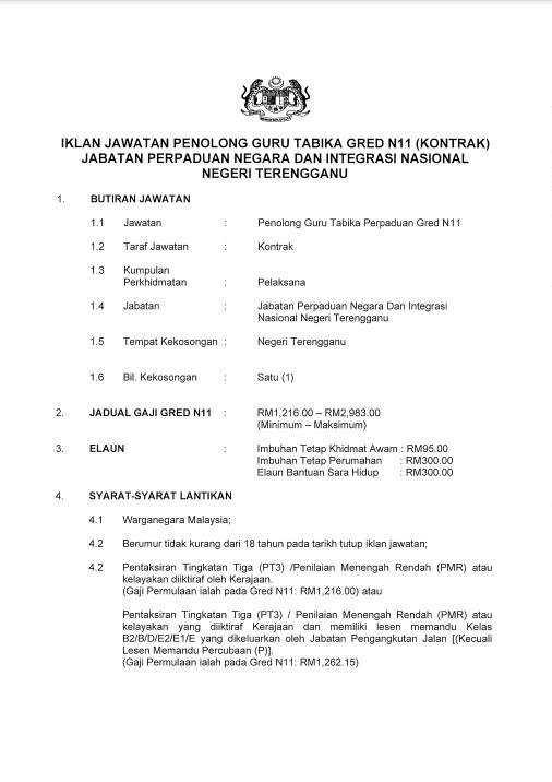Iklan Jawatan Kosong Jabatan Perpaduan Negara Dan Integrasi Nasional (JPNIN)