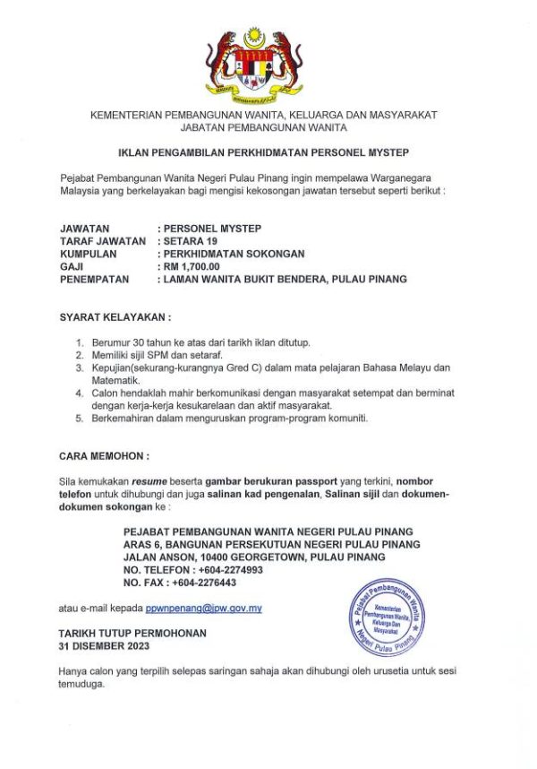 Iklan Jawatan Kosong Kementerian Pembangunan Wanita, Keluarga Dan Masyarakat