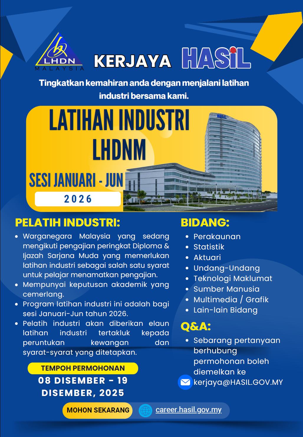 Iklan Jawatan Kosong Latihan Industri Lembaga Hasil Dalam Negeri Malaysia (LHDNM)