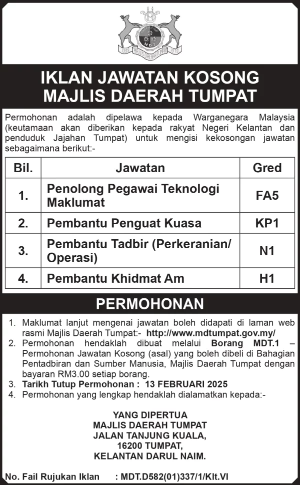 Iklan Jawatan Kosong Majlis Daerah Tumpat