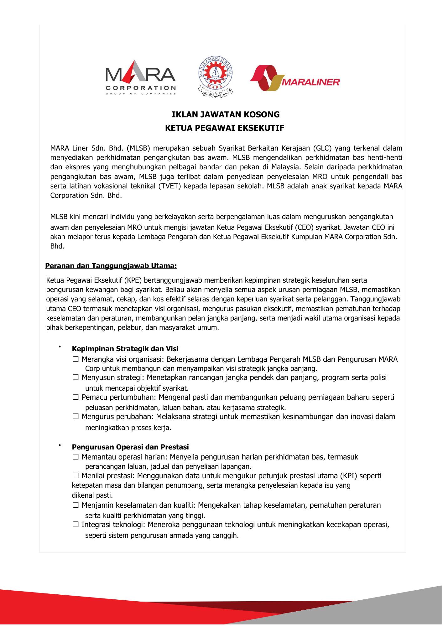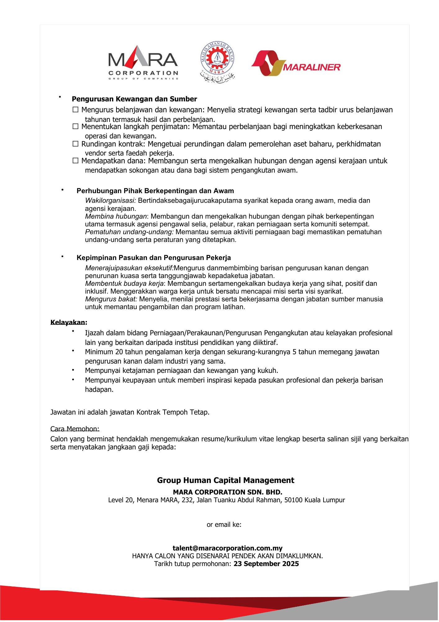 Iklan Jawatan Kosong MARA Liner Sdn Bhd