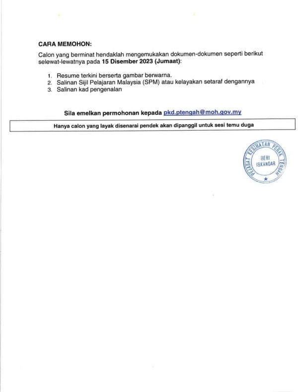 Iklan Jawatan Kosong Pejabat Kesihatan Daerah Perak Tengah