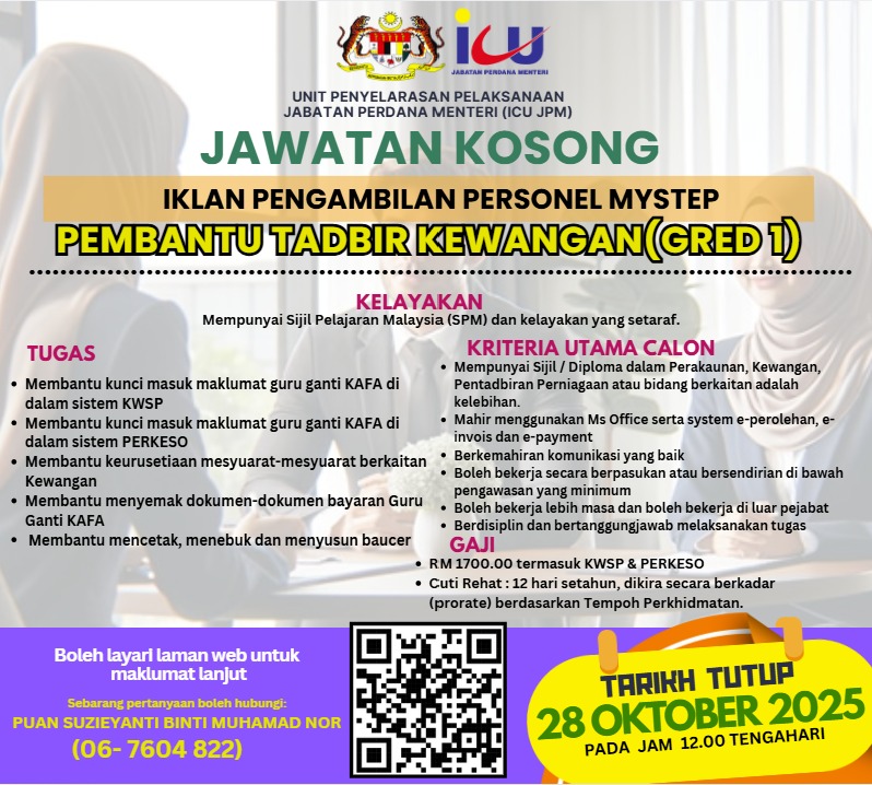 Iklan Jawatan Kosong Pejabat Pembangunan Negeri, Negeri Sembilan (ICU JPM)