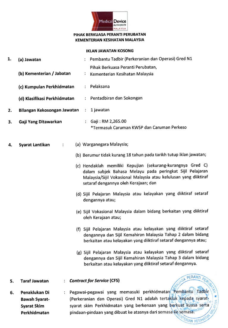 Iklan Jawatan Kosong Pihak Berkuasa Peranti Perubatan Kementerian Kesihatan Malaysia