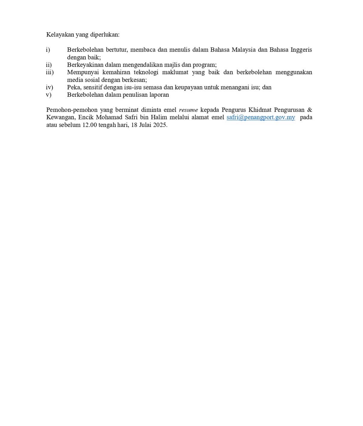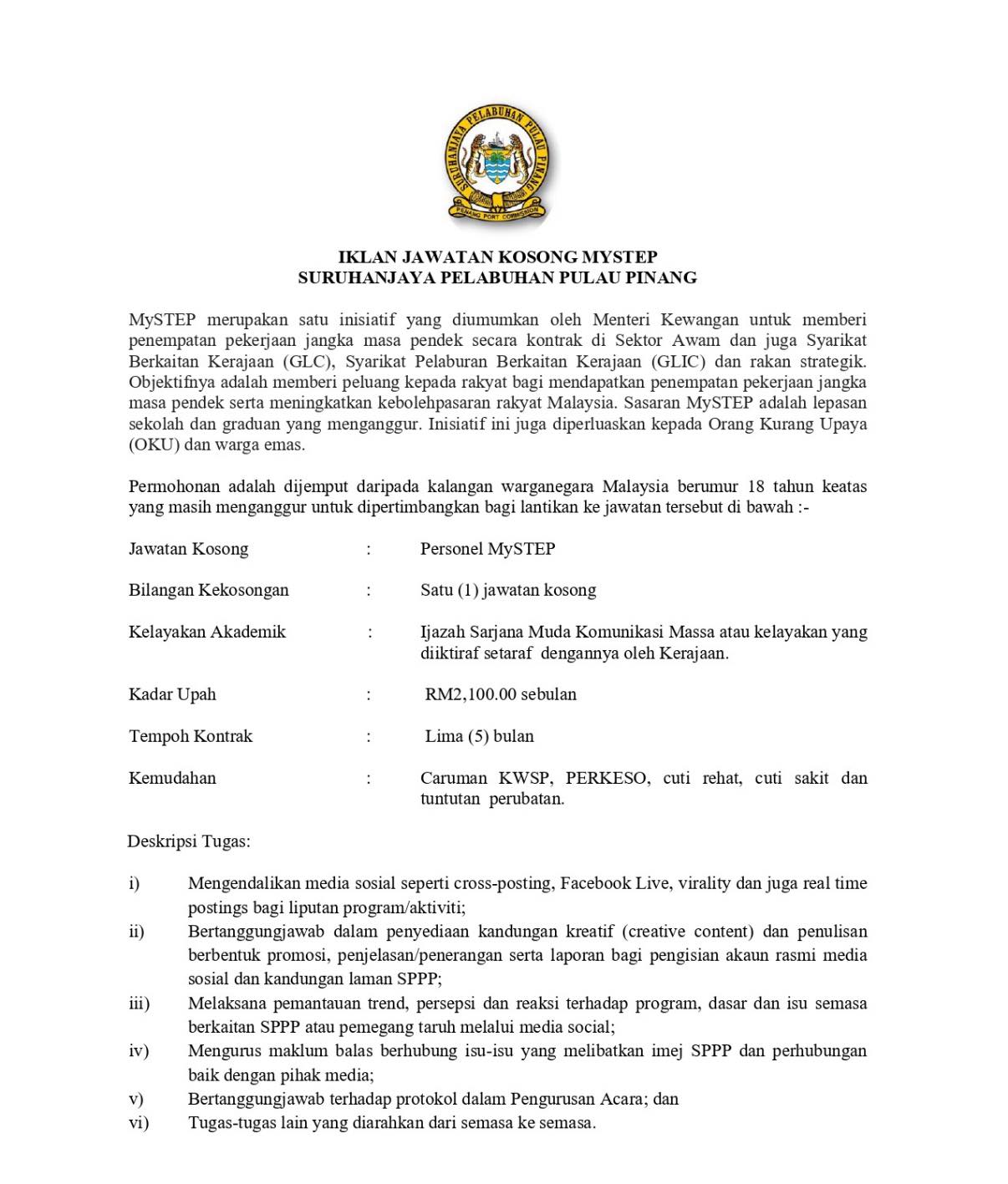 Iklan Jawatan Kosong Suruhanjaya Pelabuhan Pulau Pinang (SPPP)