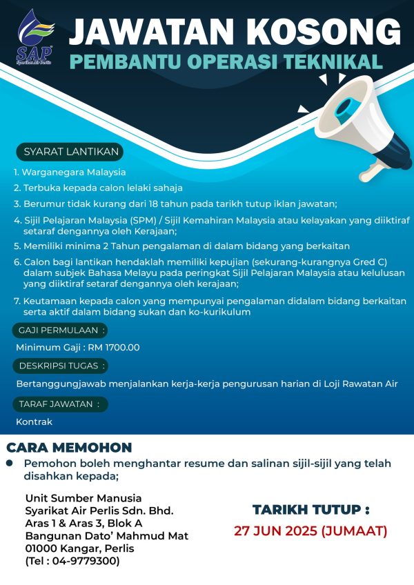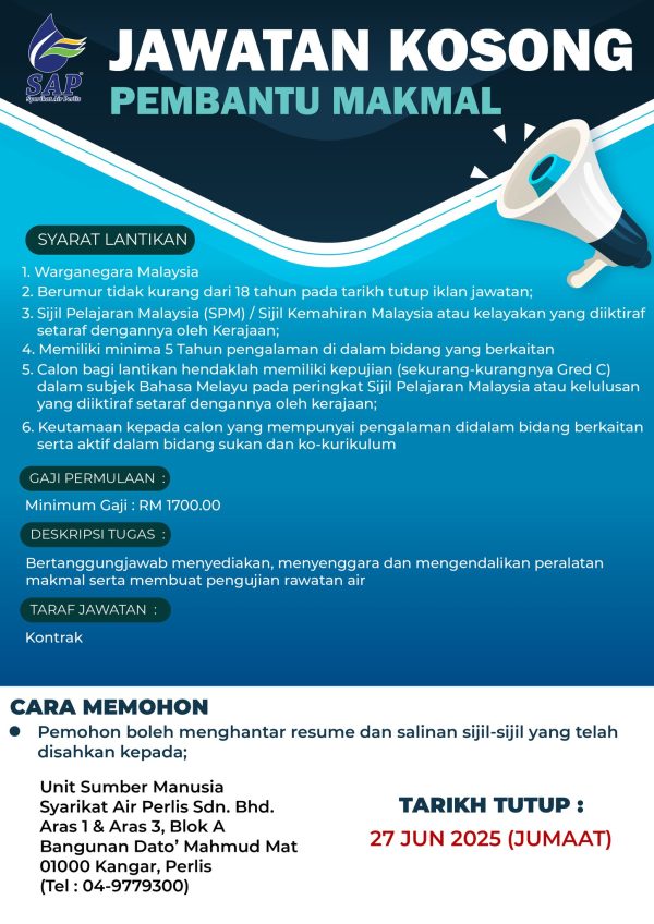 Iklan Jawatan Kosong Syarikat Air Perlis (SAP)